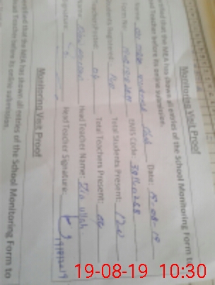 | Certified that this School was Inspected by the Undersigned MEA/DMO Today and the Information Stated Above is as Per Record. | |||||