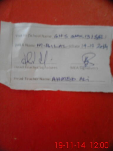 | Attendance Register | Head Teacher | MEA with School | Visit Proof |