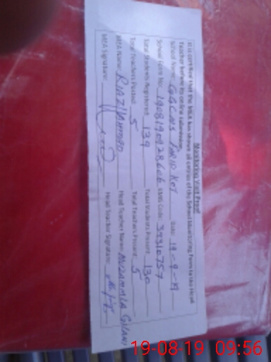 | Name: MU**** GI**** Designation: (School Headmaster's/Headmistress's) S.S.T.(SC) Phone/Cell Number: 03**** |