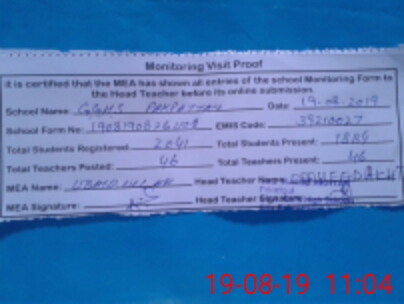 | Certified that this School was Inspected by the Undersigned MEA/DMO Today and the Information Stated Above is as Per Record. | |||||