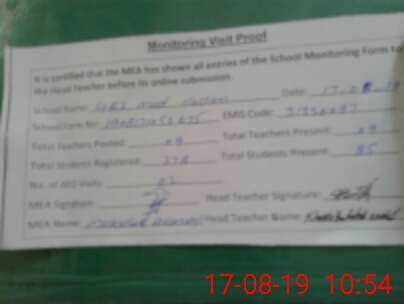 | Certified that this School was Inspected by the Undersigned MEA/DMO Today and the Information Stated Above is as Per Record. | |||||