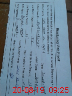 | Monitoring Date: 20-08-2019 | Start Time: 20-08-2019 08:50 AM | End Time: 20-08-2019 09:25 AM | Name of MEA: Pe**** Ak**** BN**** 12 | |