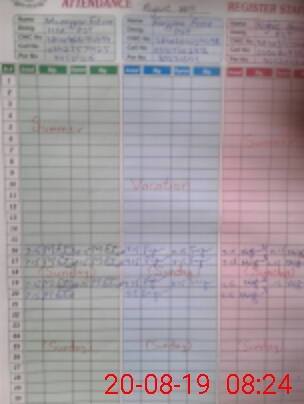 | CNIC | Full Name | Designation | R/C | Absence During Last Calender Month |