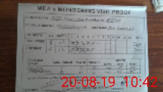 | Monitoring Date: 20-08-2019 | Start Time: 20-08-2019 10:30 AM | End Time: 20-08-2019 10:44 AM | Name of MEA: Ra**** Sh**** Al**** ex**** | |
