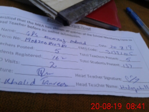 | Attendance Register | Head Teacher | MEA with School | Visit Proof |