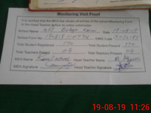 | Certified that this School was Inspected by the Undersigned MEA/DMO Today and the Information Stated Above is as Per Record. | |||||