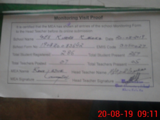 | Certified that this School was Inspected by the Undersigned MEA/DMO Today and the Information Stated Above is as Per Record. | |||||