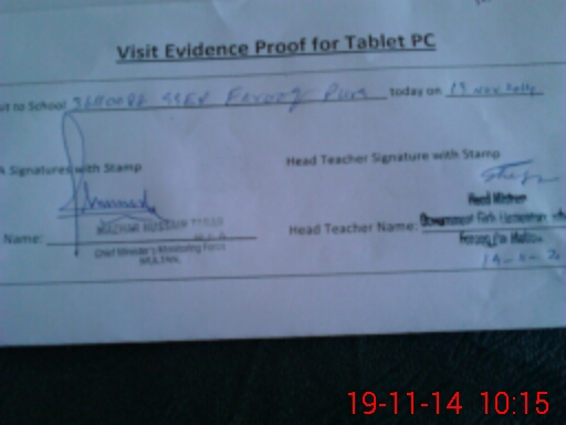 | Attendance Register | Head Teacher | MEA with School | Visit Proof |