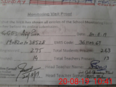 | Attendance Register | Head Teacher | MEA with School | Visit Proof |