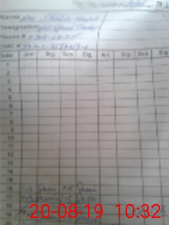 | Monitoring Date: 20-08-2019 | Start Time: 20-08-2019 09:52 AM | End Time: 20-08-2019 10:40 AM | Name of MEA: J-**** MU**** NA**** SA**** | |