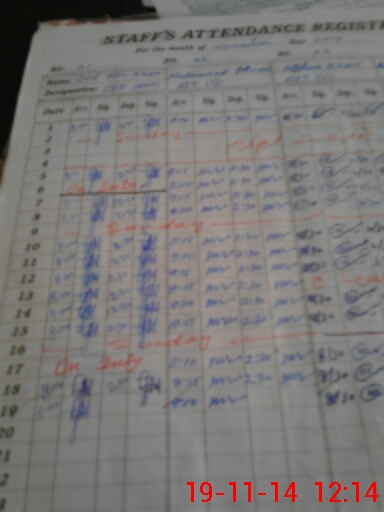 | CNIC | Full Name | Designation | R/C | Absence During Last Calender Month |