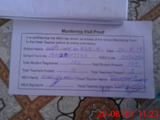 | Certified that this School was Inspected by the Undersigned MEA/DMO Today and the Information Stated Above is as Per Record. | |||||