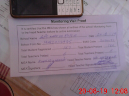 | Attendance Register | Head Teacher | MEA with School | Visit Proof |