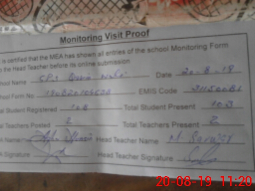 | EMIS Code: 31150081 | Name of School: GPS QASIM WALA | |||