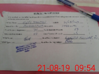 | Monitoring Date: 21-08-2019 | Start Time: 21-08-2019 09:13 AM | End Time: 21-08-2019 09:59 AM | Name of MEA: ZM**** Ak**** | |