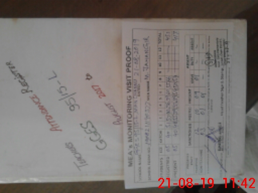 | Monitoring Date: 21-08-2019 | Start Time: 21-08-2019 10:21 AM | End Time: 21-08-2019 11:43 AM | Name of MEA: Mu**** Ja**** | |