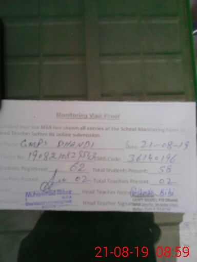 | Certified that this School was Inspected by the Undersigned MEA/DMO Today and the Information Stated Above is as Per Record. | |||||