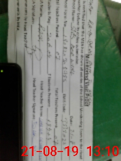 | Monitoring Date: 21-08-2019 | Start Time: 21-08-2019 12:51 PM | End Time: 21-08-2019 01:12 PM | Name of MEA: Ra**** Hu**** Gi**** | |