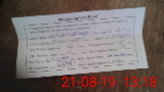 | Monitoring Date: 21-08-2019 | Start Time: 21-08-2019 12:35 PM | End Time: 21-08-2019 01:18 PM | Name of MEA: GH**** MU**** BN**** | |