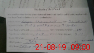 | Monitoring Date: 21-08-2019 | Start Time: 21-08-2019 08:17 AM | End Time: 21-08-2019 09:00 AM | Name of MEA: Ta**** Me**** | |