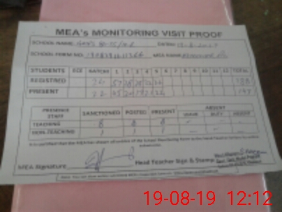 | Attendance Register | Head Teacher | MEA with School | Visit Proof |