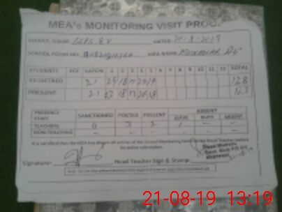 | Attendance Register | Head Teacher | MEA with School | Visit Proof |