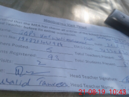 | Certified that this School was Inspected by the Undersigned MEA/DMO Today and the Information Stated Above is as Per Record. | |||||
