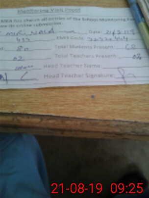 | Attendance Register | Head Teacher | MEA with School | Visit Proof |