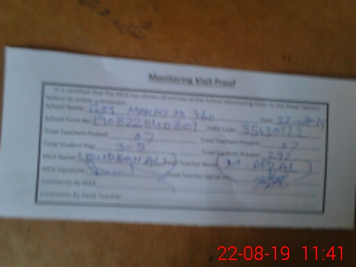 | Attendance Register | Head Teacher | MEA with School | Visit Proof |