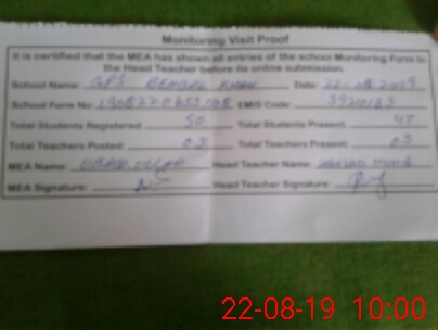 | Certified that this School was Inspected by the Undersigned MEA/DMO Today and the Information Stated Above is as Per Record. | |||||