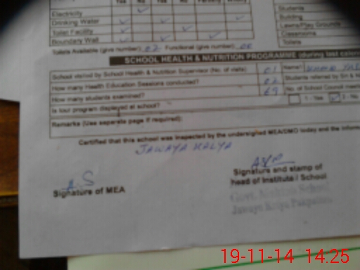| School Visited by School Health & Nutrition Supervisor (No. of Visits) | 1 | Name1: | KHALID YASIN | Name2: | |