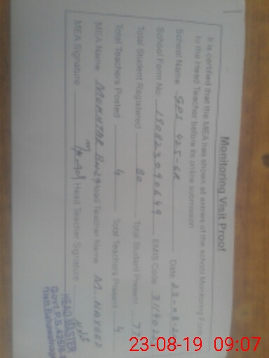| Certified that this School was Inspected by the Undersigned MEA/DMO Today and the Information Stated Above is as Per Record. | |||||