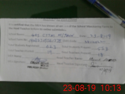 | Certified that this School was Inspected by the Undersigned MEA/DMO Today and the Information Stated Above is as Per Record. | |||||