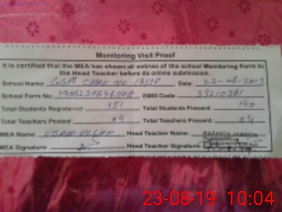 | Certified that this School was Inspected by the Undersigned MEA/DMO Today and the Information Stated Above is as Per Record. | |||||