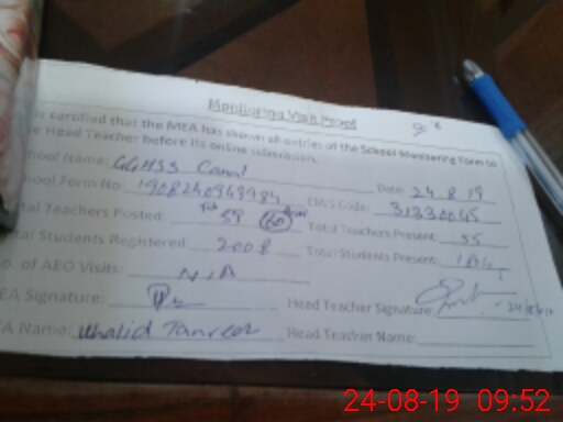 | Certified that this School was Inspected by the Undersigned MEA/DMO Today and the Information Stated Above is as Per Record. | |||||