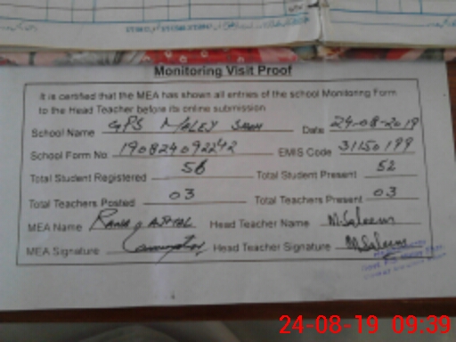 | Certified that this School was Inspected by the Undersigned MEA/DMO Today and the Information Stated Above is as Per Record. | |||||