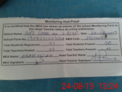 | Certified that this School was Inspected by the Undersigned MEA/DMO Today and the Information Stated Above is as Per Record. | |||||