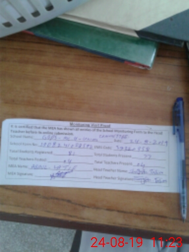 | Certified that this School was Inspected by the Undersigned MEA/DMO Today and the Information Stated Above is as Per Record. | |||||