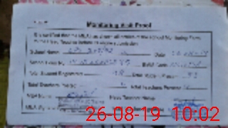 | Monitoring Date: 26-08-2019 | Start Time: 26-08-2019 08:29 AM | End Time: 26-08-2019 10:03 AM | Name of MEA: Ra**** Mu**** Sa**** BN**** 19 | |