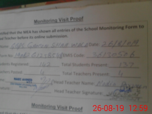 | EMIS Code: 36130506 | Name of School: GGPS GAMON SHAH WALA | |||