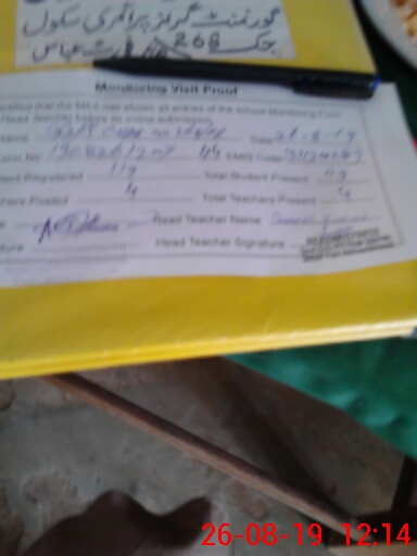 | Certified that this School was Inspected by the Undersigned MEA/DMO Today and the Information Stated Above is as Per Record. | |||||