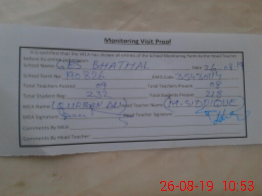 | Attendance Register | Head Teacher | MEA with School | Visit Proof |