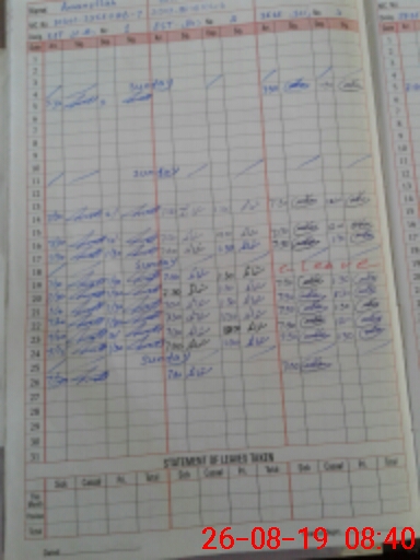| CNIC | Full Name | Designation | R/C | Absence During Last Calender Month |