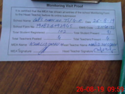 | EMIS Code: 31140154 | Name of School: GPS CHAK NO. 75/4-R | |||