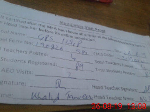 | Certified that this School was Inspected by the Undersigned MEA/DMO Today and the Information Stated Above is as Per Record. | |||||