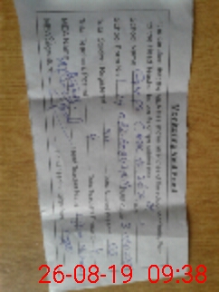 | Monitoring Date: 26-08-2019 | Start Time: 26-08-2019 08:42 AM | End Time: 26-08-2019 09:38 AM | Name of MEA: M.**** HA**** BN**** | |