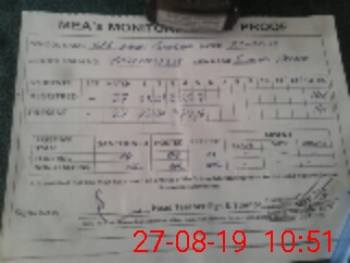 | Monitoring Date: 27-08-2019 | Start Time: 27-08-2019 10:25 AM | End Time: 27-08-2019 10:54 AM | Name of MEA: Sa**** Ah**** | |