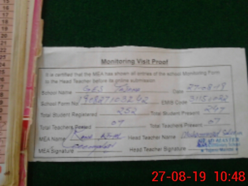 | Certified that this School was Inspected by the Undersigned MEA/DMO Today and the Information Stated Above is as Per Record. | |||||