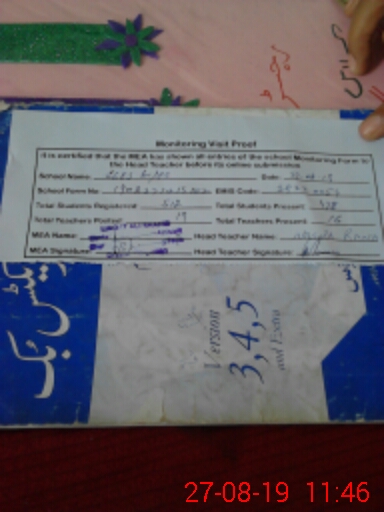 | Certified that this School was Inspected by the Undersigned MEA/DMO Today and the Information Stated Above is as Per Record. | |||||
