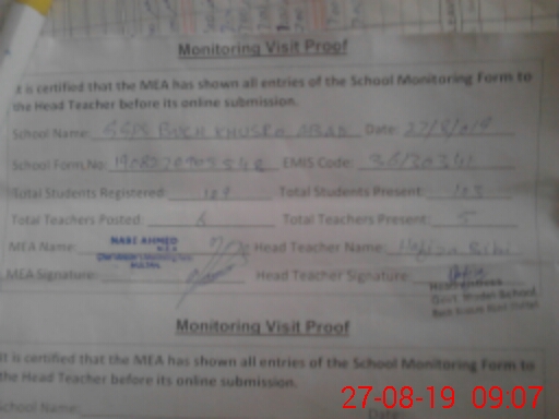 | EMIS Code: 36130341 | Name of School: GMPS BUCH KHUSRO ABAD BOSAN ROAD MULTAN | |||